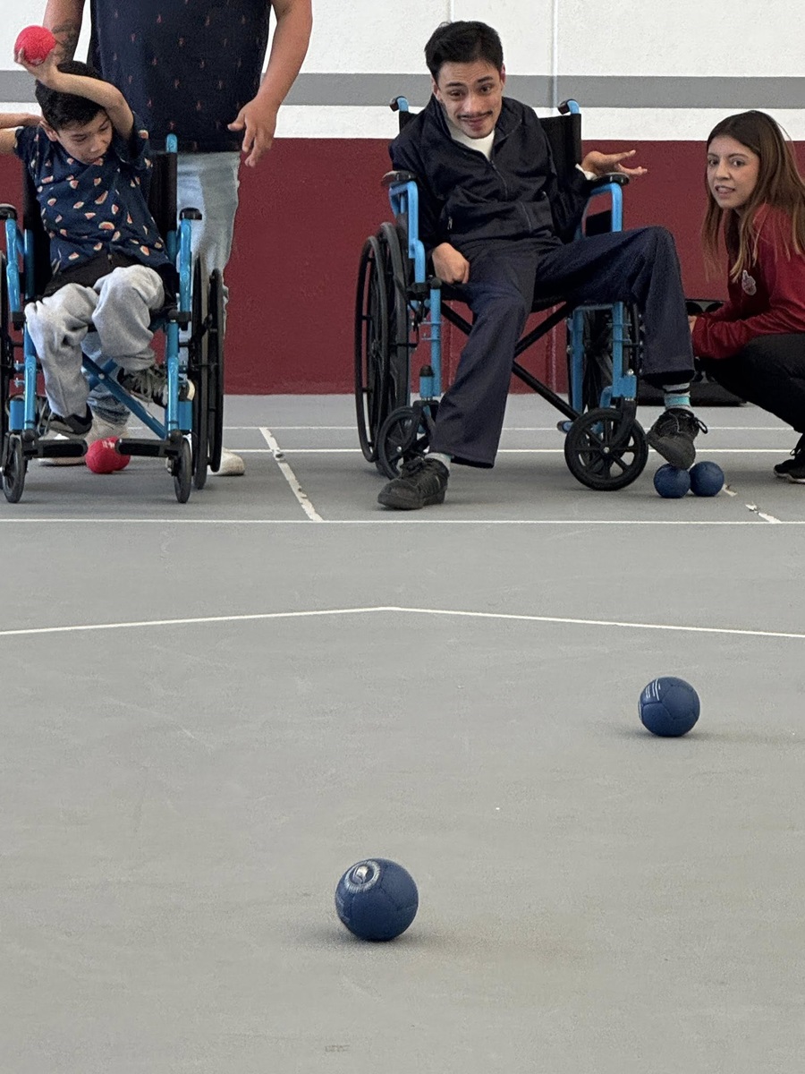 Zacatecas., Zac. 17 de Septiembre 2025.- En el marco de la FENAZA 2025, se lleva a cabo el Festival de la Discapacidad con la disciplina de boccia, donde participan Emiliano Belmontes Escobedo, Alexander Sánchez Álvarez, Abraham Arellano Hernández, Ian León Garay Madrid y Juan Carlos Dueñas, quienes disputan el primer lugar en las categorías BC1, BC2, BC3 y BC4.