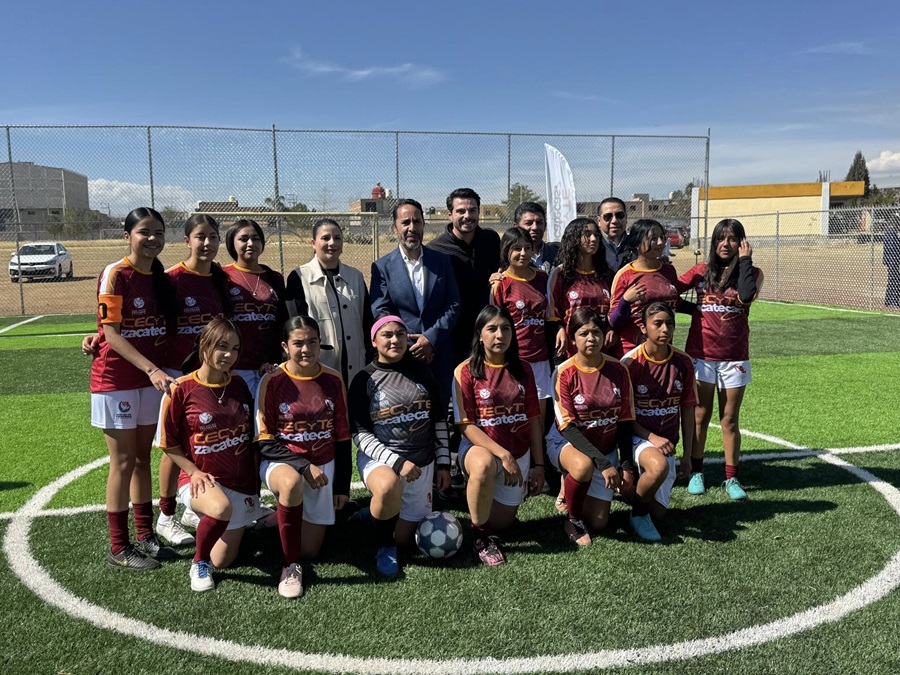 Zacatecas., Zac. 04 de Febrero 2026.- Hoy, el Gobernador del Estado David Monreal Avila, hizo entrega de una cancha de pasto sintético en el CECyTEZ de Calera, un espacio que fortalecerá la actividad física y el deporte entre las y los jóvenes del municipio.