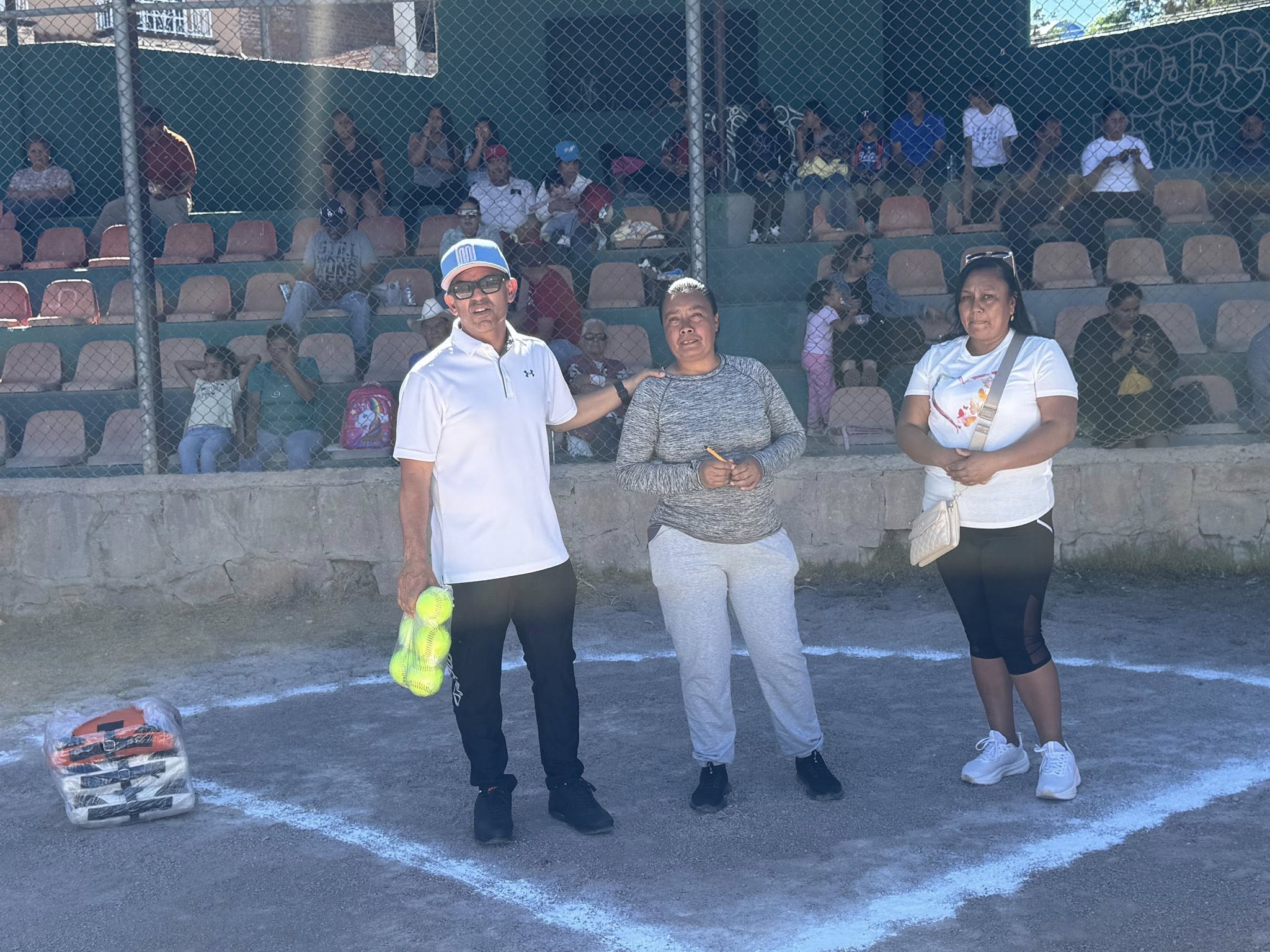 Durante su visita, el titular del INCUFIDEZ atendió la gestión realizada por la presidenta de la Liga Municipal de Sóftbol Femenil, brindando apoyo con material deportivo, específicamente almohadillas y pelotas, destinadas a fortalecer el desarrollo de estas finales.