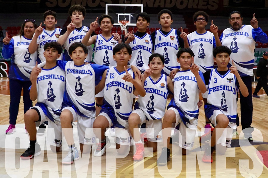 Zacatecas., Zac. 08 de Febrero 2026.- Los equipos de Fresnillo en las categorías 2010-2011 y 2012-2013 conquistaron la fase estatal de la Olimpiada Nacional 2026 en basquetbol varonil al imponerse en sus respectivas finales este domingo sobre el Gimnasio Marcelino González.