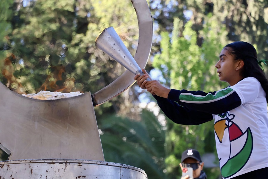 Jonathan Ramírez de la Escuela Benito Juárez representó en el presídium a los alumnos-deportistas de las 13 regiones de educación, en tanto que Valeria Franco Jiménez encendió el pebetero con el fuego simbólico de unión, mientras que Violeta Torres Sáenz realizó el juramento deportivo.