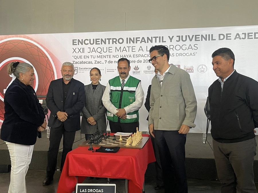 Zacatecas., Zac. 07 de Noviembre 2025.- Con la participación de más de 800 niñas, niños y jóvenes, se llevó a cabo en el Multiforo el Encuentro Infantil y Juvenil de Ajedrez por Equipos “XXII Jaque Mate a las Drogas”, bajo el lema “Que en tu mente no haya espacio para las drogas”. El evento reunió a talentos de diferentes municipios en una jornada que, además de fomentar el pensamiento estratégico y la sana competencia, promueve valores de disciplina, respeto y prevención.